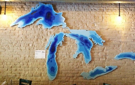 Speaking of, a friend who lives in Grand Rapids made me two gorgeous, functional ceramic bowls as a birthday gift and I’m now surprised to find she isn’t selling them online anywhere. If I convince her to, I’ll let you know. She also used to make these carved wood Great Lakes wall hangings I liked but focuses now on custom art for her interior design practice.