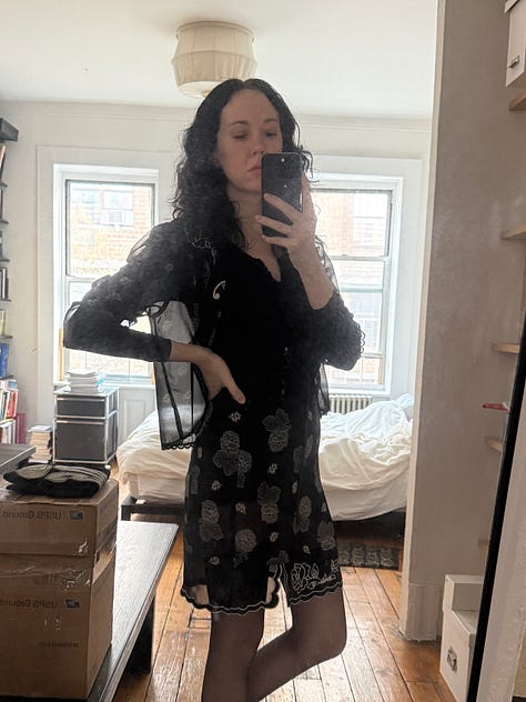 You may recall that in December, Kaitlin discovered where Vaccarello found the patterns for his Resort 2026 lingerie-based collection, via an un-captioned post by his friend, the stylist Lotta Volkova. We visited this relic of a store in the midtown Manhattan Art & Antiques Center, finding it to be delightful and fairly priced, which is to say, everything is expensive because it is an original piece of silk and lace art.