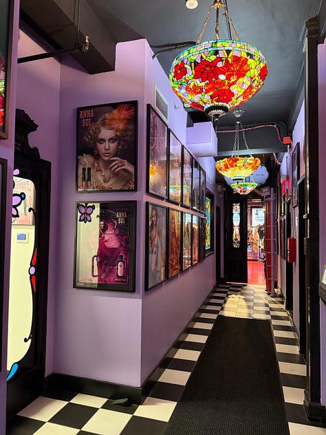 Another meal I remember from the week is the simple rotisserie chicken bowl at Don Ceviche, after a shopping event at Café Forgot for Anna Sui’s latest collection, which served rosette-adorned purple taro cake and single-serving bottles of tequila with purple straws, or fizzy peach margaritas. I was chatting with Delia, each of us wearing borrowed Anna Sui outfits, when a customer assumed we worked there. Valid!